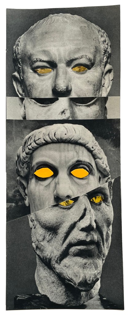 Virgo and Sagittarius; two from a complete set of astrological signs made from a single antiques catalog.